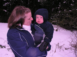 These are some pics that weren’t on my camera from when we got some snow around here. We took Carson over to my inlaws house (isn’t it gorgeous?) and let him walk around in the snow for a bit.