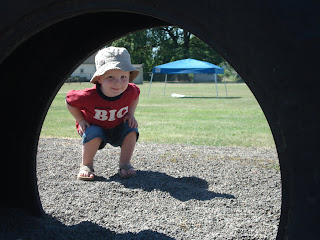 45 minutes later–I kid you not–still nursing the orange sucker. When we look at these pictures, Carson still mimes eating that thing. It was obviously a high point in his young life.