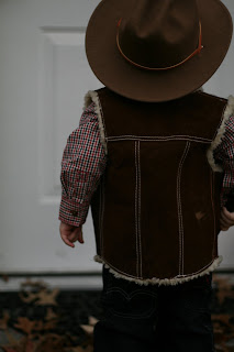 Aunt Becky helping the cowboy button his vest. This vest was TRENT’s when he was a little boy! If I have the story right (which is not always the case) his grandparents got it for him…in Mexico? I think? Anyway, Trent started calling it the family heirloom vest.