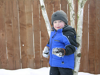 This may be my favorite pic from the snowday. Here we are sporting our snow bibs. My good snow clothes are still loaned out to a friend, but these are hand-me-downs from Eric, and Carson’s are from last year–thus the capri-pant-style! I think his expression is priceless!