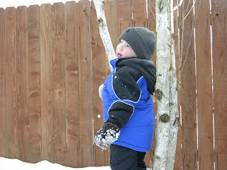 Showing Carson how to throw a snowball at Daddy.