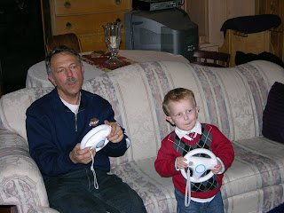 I knew that his sister Michelle had gotten him a gray and black sweater, which he was going to open AFTER the service. I made him open it early! I gave in on the slacks and he and Carson wore jeans, but he did have to buy some black shoes and belt at Fred Meyer, the only accessible store in the snow/ice.