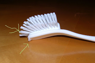 But bristles in a round shape don’t help when I’m working on the inside corner of a bread pan or casserole dish. The bristles have to come up above the top of the brush in a sort of point to help with those corners.