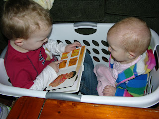 On a lazy Sunday afternoon (Sunday afternoon=laundry) Trent put Sydney in this basket for fun, & Carson crawled in with a book and started reading to her.