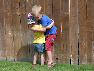 Just my colorful kids doing their thing in the backyard: