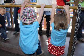 This is classic Sydney: ever since she was an infant, she has always been a home-body. I remember at 3 months old we took her to camp and she was SO fussy in big groups. Then we would take her into a quiet cabin with just our family and she calmed down and started playing and grinning. This was one morning before we went to the park–she was hamming it up for the camera.