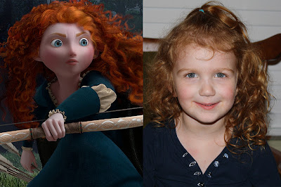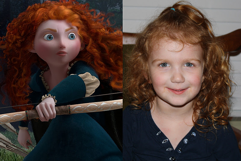 We saw a short trailer for the new Pixar movie, called BRAVE. It’s supposed to come out this summer, and we are HUGE Pixar fans. (Maybe you remember a completely random post where I rated all the current Pixar movies in order of my preference.) This new movie is Pixar’s first feature film with a female lead, and we think she looks pretty familiar…