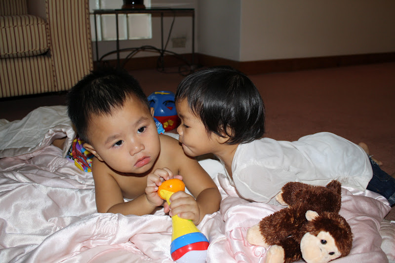 My friend Diane asked a bunch of questions and I won’t be able to answer all of them, but I’ll try. š Syd and Carson are still doing great with all of it. Carson lost a tooth within hours of our return, and when one of his BFF’s called for a congratulatory conversation, I was eavesdropping and Carson said, with all intonation of a rehearsed teenager “Oh, sorry. That noise is my little brother. He’s APPARENTLY having a very loud bath right now.” I’ve heard both of them drop the term “baby brother” or “little brother” several times in conversation. They have heard us using several Thai terms to talk with him, but often get it mixed up. So sometimes they are scolding him and all he hears is “HELLO! HELLO!” or when they are snuggling up to him they say “let’s eat! Let’s eat!” But they have been very patient and loving. Sydney struggles with being TOO loving. A couple of times she got whacked in the face by her precious baby brother, and I kind of didn’t want to correct him, b/c she was totally all up in his space! We say “Back away, Sydney!” many times a day. But I wonder if all that loving on him is why he’s made such great strides in treating her more gently.