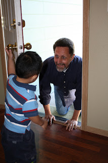 Well, I started this post this afternoon while I was trying to stay awake, and now everyone is in bed and I’m falling asleep at the computer, so it will be short. I wanted to try to get some pics up and just let you all know that we are doing well. The days are good–Asher does not seem sad at all during the day and we don’t have any trouble keeping him up. Trent and I, however, are nodding off by late afternoon. Asher has been playing, copying and following the sibs around with lots of smiles and laughter while interacting with all of us. It’s so great to see. We are still working to firmly/gently correct some undisciplined/learned behavior from his life before us. He has a tendency to bite, spit and hit (and was genuinely SHOCKED when we told him NO). The hitting and biting are hardly ever out of anger or even frustration, just misguided excitement or playing. We were told by many–including the agency–that the parenting style in thailand is much more laid back for small children. They are not disciplined and behavior like this is often just laughed at or mildly reprimanded with no consequences. We’re trying to exercise plenty of grace while still maintaining our household rules. He’s doing better and better each day. We’ve especially seen improvements with the way he interacts with Sydney. They took a bath together last night and he was mesmerized when I washed her hair. The hair he had previously pulled, he very gently was patting and saying “WOW” and running his hand on her head. It was pretty cute. He was rough with her at first, but now has been being very gentle.