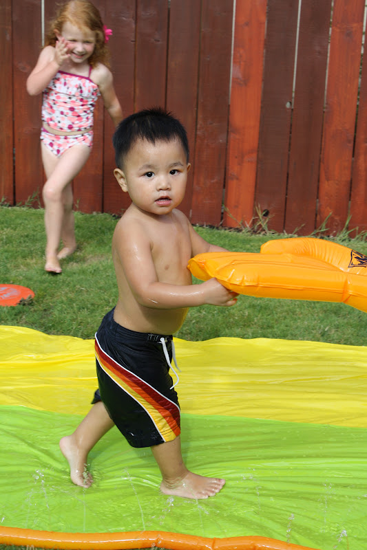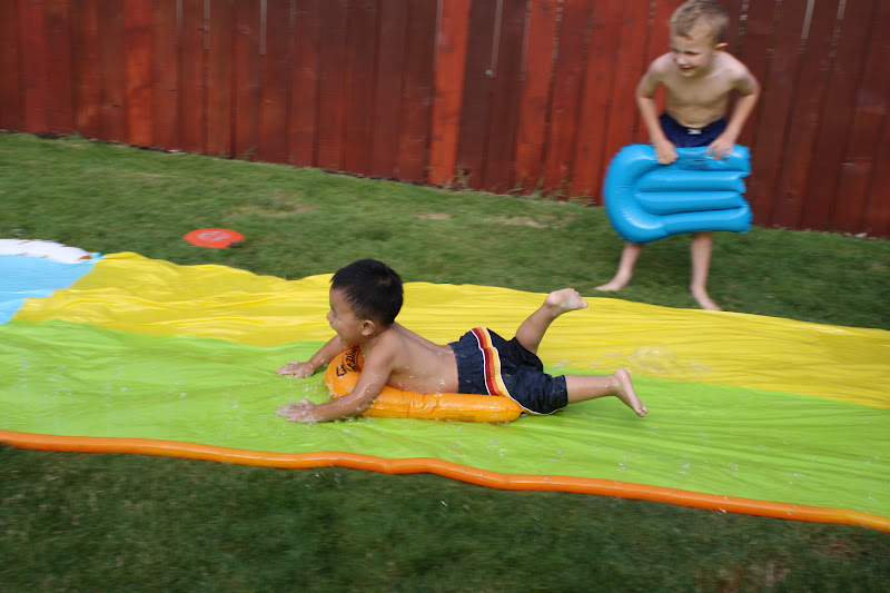 Good ol’ slip & slide! Too bad the kids don’t like to run and slide themselves. They want Daddy to propel them.