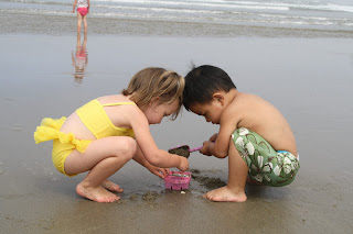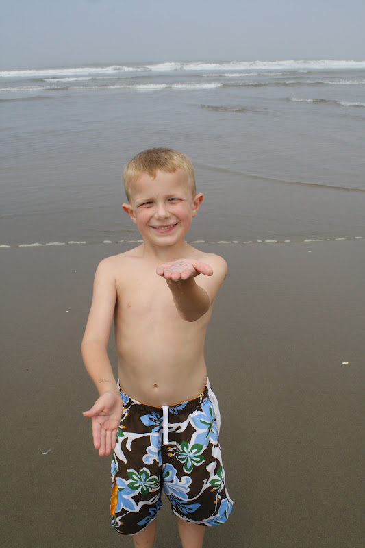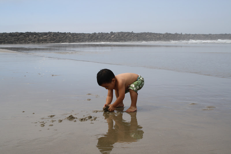 Unsurprisingly, Asher was immediately fond of the messy sand. At home he gets in trouble for throwing sand. Well, for throwing just about anything but a soft ball. Then all of a sudden, it’s wet! It’s slimy! I’m digging and throwing and they are still smiling!