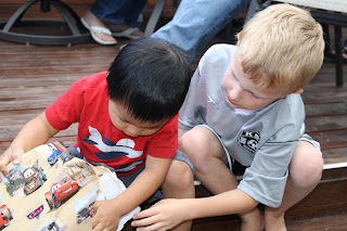 We lucked out with great weather and everyone was able to play and hang outside. And yes, of course Asher is wearing his airplane shirt to his airplane party. DUH!