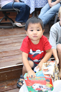 Asher is at that age of innocence where he was thrilled with the first present he opened and would have been more than happy to play with it for the rest of the night. Instead, he was dismayed when we “took it away” so he could open more! Pretty soon he got the hang of it…with a little help from big bro, of course.