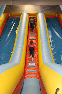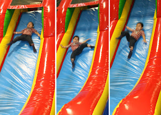 Only the big kids were tall enough for this slide. They had just replaced the lining the night before, so Carson and Syd were flying! We had watched a safety video on how to go down the slide, and I was kind of impressed they both stuck to it!